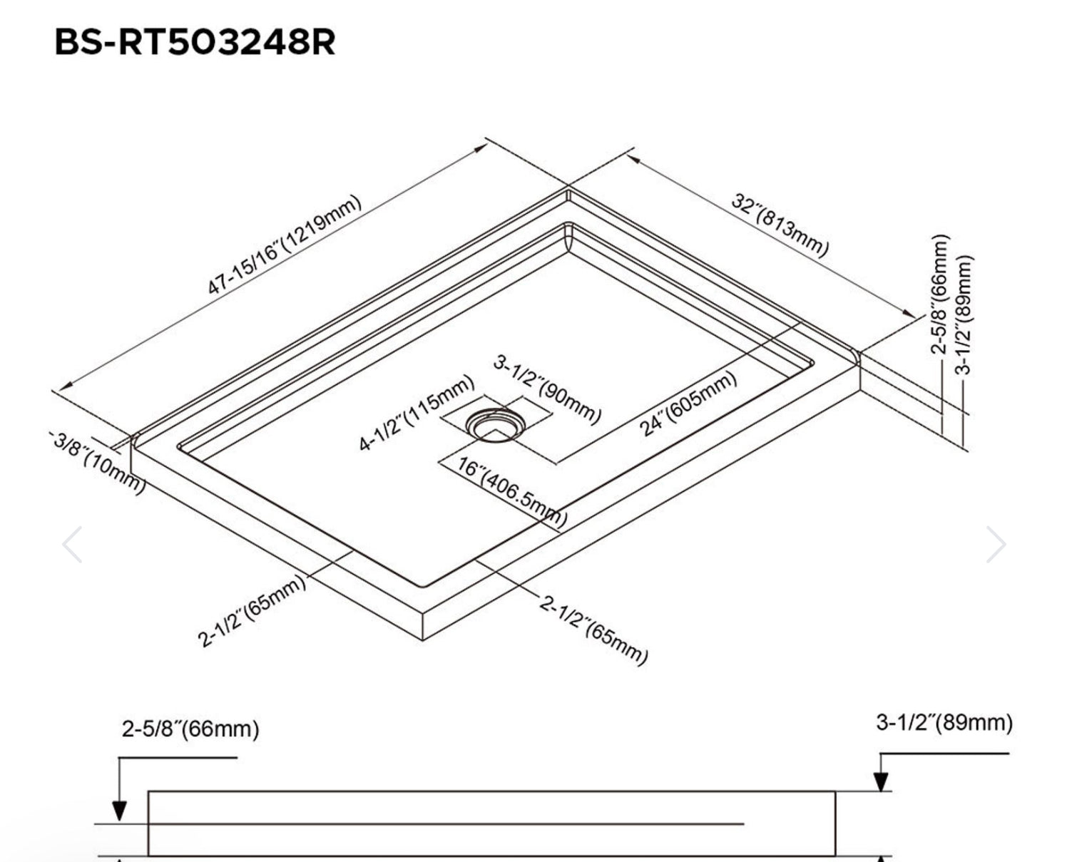 Base de douche ROTHERA 48" x 32"