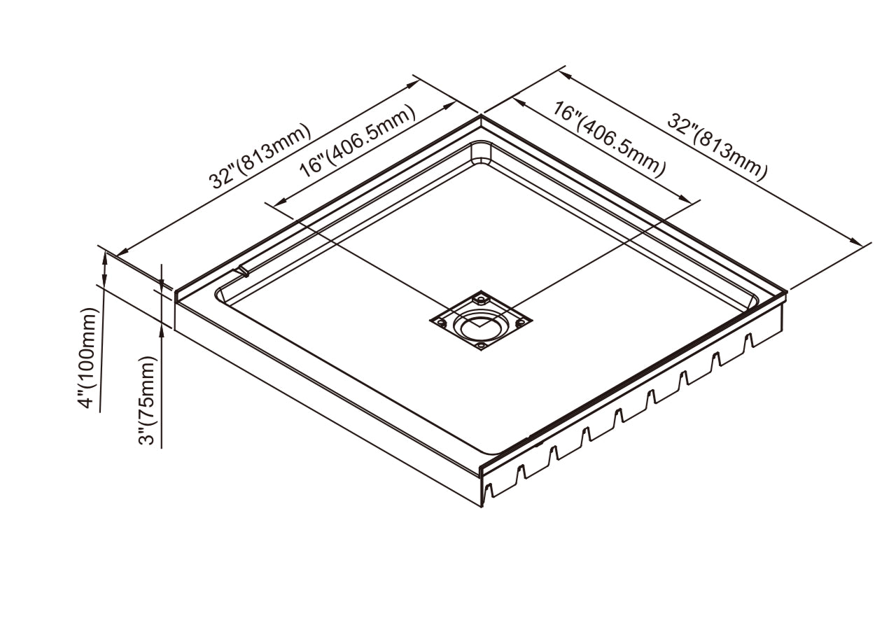 - La base carrée est dotée d'un drain caché par une plaque carrée, vous offrant un fini esthétique. Elle est munie de 2 brides de carrelage pré moulées qui permettent une installation simple et étanche des panneaux muraux.