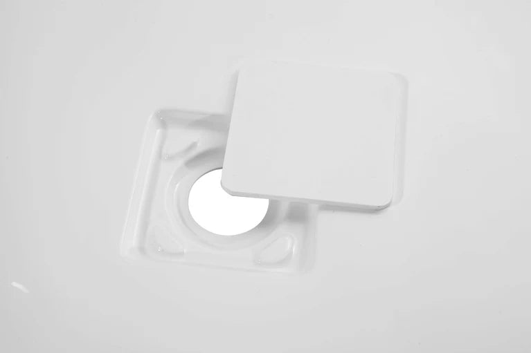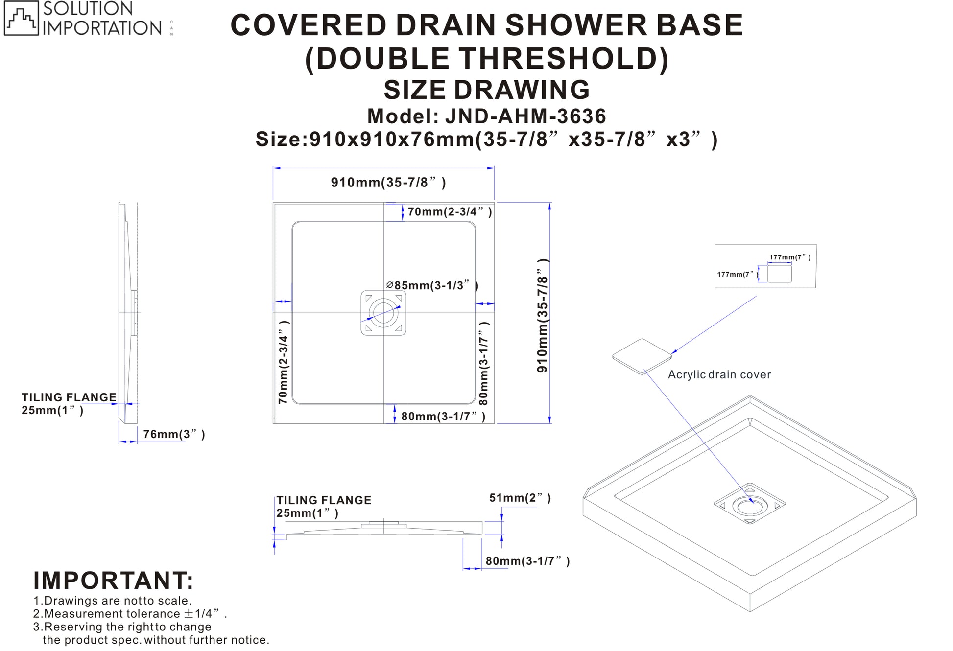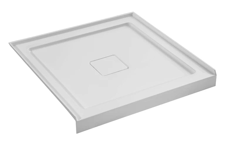 Une base de douche de 36" x 36" en acrylique blanc lustré, résistante aux rayures, aux taches et au glissement. Renforcée à la fibre de verre pour une solidité accrue, elle est pré-nivelée pour faciliter l’installation. Hauteur de 3" incluant la bride de carrelage.