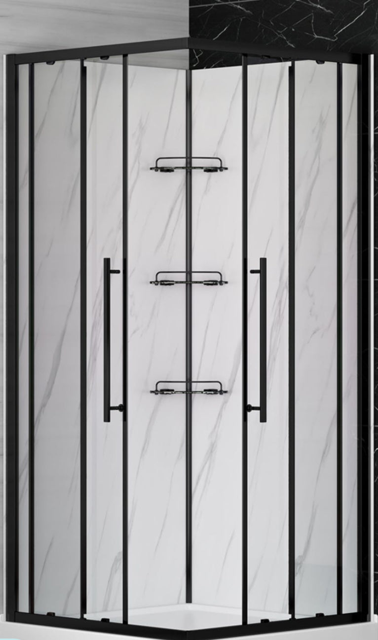 - Gardez votre douche rangée et organisée grâce aux 3 tablettes en verre. Conçues pour être installés en coin, les tablettes ont une garniture chrome qui s'agence parfaitement au cadre de la porte de douche.