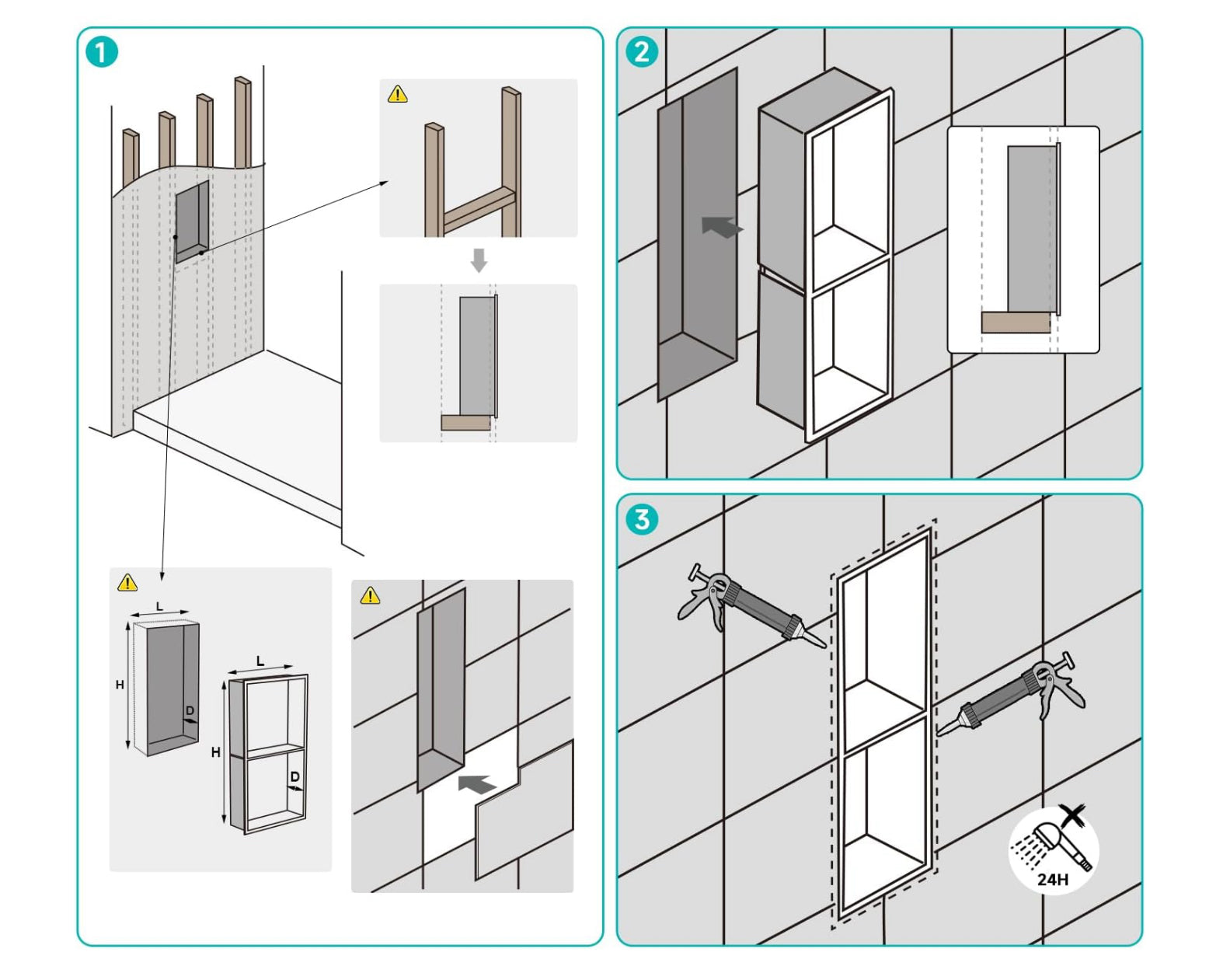 Installation facile : Contrairement aux niches traditionnelles, aucun carrelage n’est requis. En quelques étapes simples et avec très peu de matériaux, vous pouvez installer cette étagère pratique au mur de votre salle de bain. Aucun outil complexe ou processus compliqué n’est nécessaire.