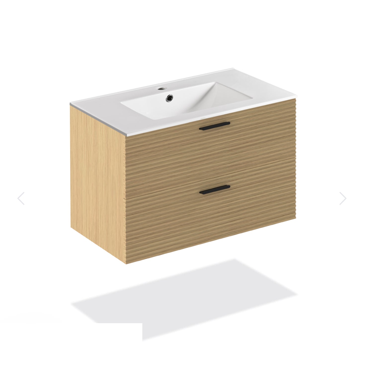 Découvrez la vanité murale MARGATE en bois clair, dotée d’un revêtement texturé qui apporte une touche de sophistication à votre salle de bain.