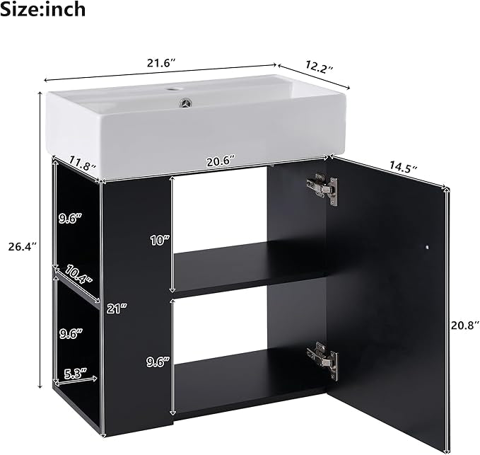 Cette vanité compacte dispose d’une porte à fermeture douce et d’une tablette ouverte sur le côté gauche, idéale pour ranger vos essentiels de salle de bain tout en les gardant à portée de main.